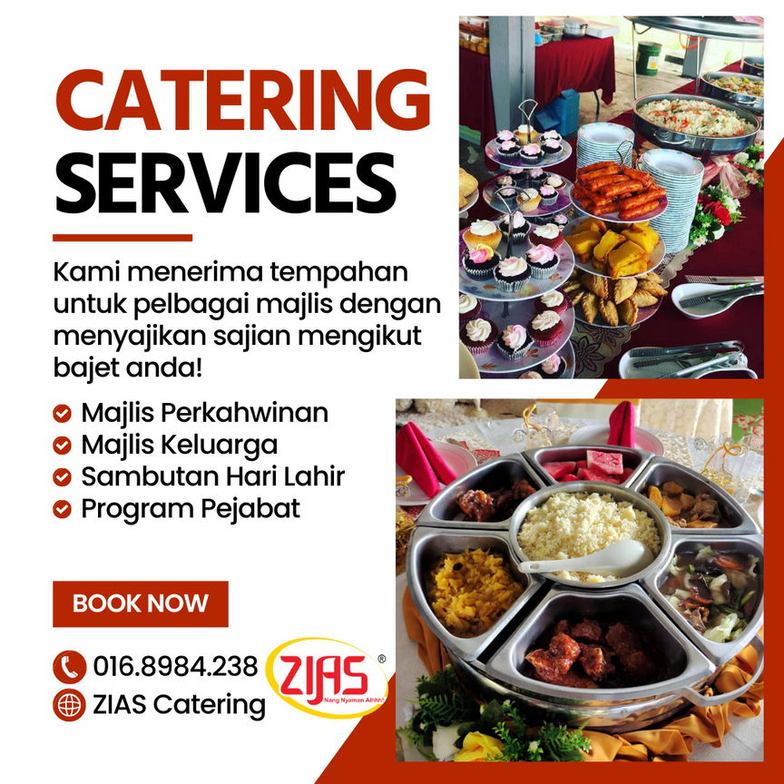 Kami menawarkan pelbagai menu sajian mengikut keperluan pelanggan. Katering di rumah, dewan dan di mana sahaja bergantung kepada keperluan dan bajet anda.