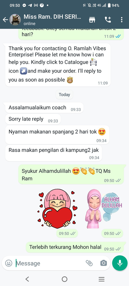 Pelanggan berpuas hati dengan rasa sedap menu yang ditempah!